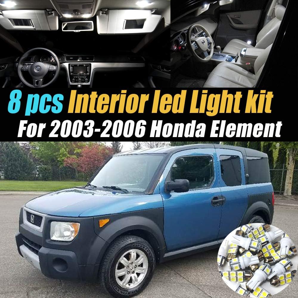 Amazon Com 8pc Super White 6000k Car Interior Led Light Bulb Kit Pack Compatible For 2003 2006 Honda Element Automotive
