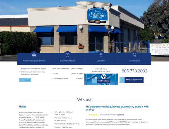 We are centrally located for easy access from Nipomo Santa Maria 5 Cities and San Luis Obispo. Give us a call at 805 773-2002 to make. Bavarian Auto Haus has done good work for me over the years.